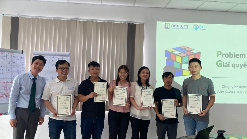 Hiểu được điều này, đồng thời hướng đến mục tiêu xây dựng một đội ngũ trẻ tiềm năng sẵn sàng cống hiến và đồng hành lâu dài cùng tổ chức. Vừa qua Công ty TNHH Nextern Việt Nam chuyên về thiết kế thiết bị y tế và là đối tác sản xuất, tập trung vào phát triển các giải pháp thông minh, dựa trên công nghệ, sức khỏe và chăm sóc sức khỏe lấy bệnh nhân làm trung tâm từng bước khắc phục được sự phức tạp thông qua sự hợp tác mạnh mẽ với phương châm con người là chủ thể, nền tảng cho sự phát triển của doanh nghiệp, đã chọn lựa BCC - đơn vị 24 năm Dẫn đầu tính Ứng dụng trong Tư Vấn & Đào tạo, Phát triển Nhân sự chất lượng cao để thực hiện chương trình đào tạo nội bộ bộ giải pháp nâng cao gồm “Tư duy tăng trưởng và Kỹ năng Giao tiếp & Giải quyết vấn đề hiệu quả trong công việc cho 30 nhân viên của mình nhằm tạo môi trường học tập làm việc sinh động, đảm bảo sự phát triển của mỗi cá nhân trong tổ chức.