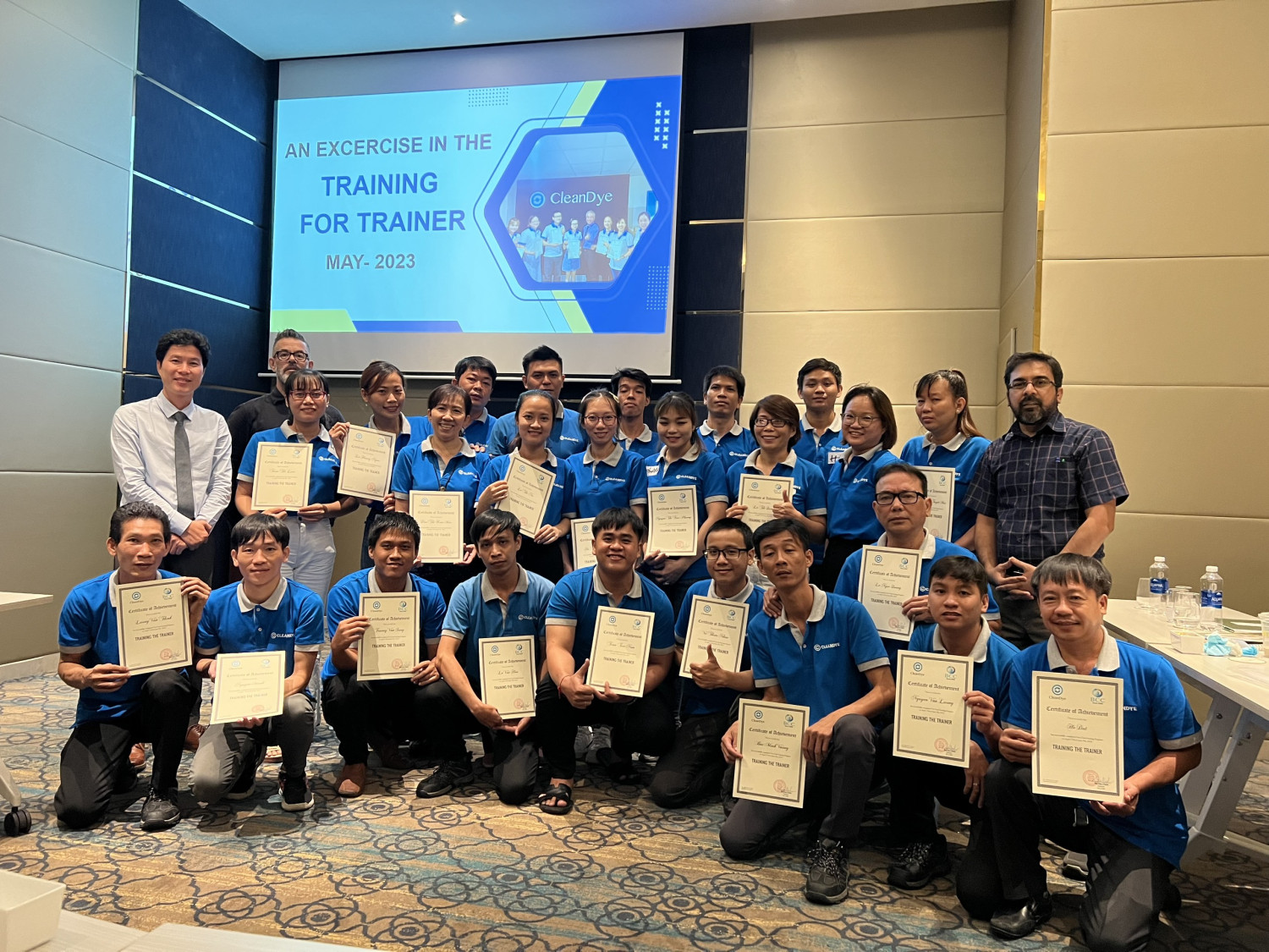 Giải pháp được áp dụng chính là dùng những nhân viên đi trước huấn luyện cho đội ngũ đi sau. Chương trình đào tạo Training the Trainer hay còn gọi là Practical Training Skill : Kỹ năng đào tạo thiết thực cho người huấn luyện nội bộ trong doanh nghiệp được BCC, 23 năm kinh nghiệm & dẫn đầu tính ứng trong Tư Vấn, Đào tạo & Phát triển Nhân sự được CleanDye triển khai ngay cho gần 30 người học là các chuyên viên trưởng nhóm khối kỹ thuật sản xuất, giúp họ